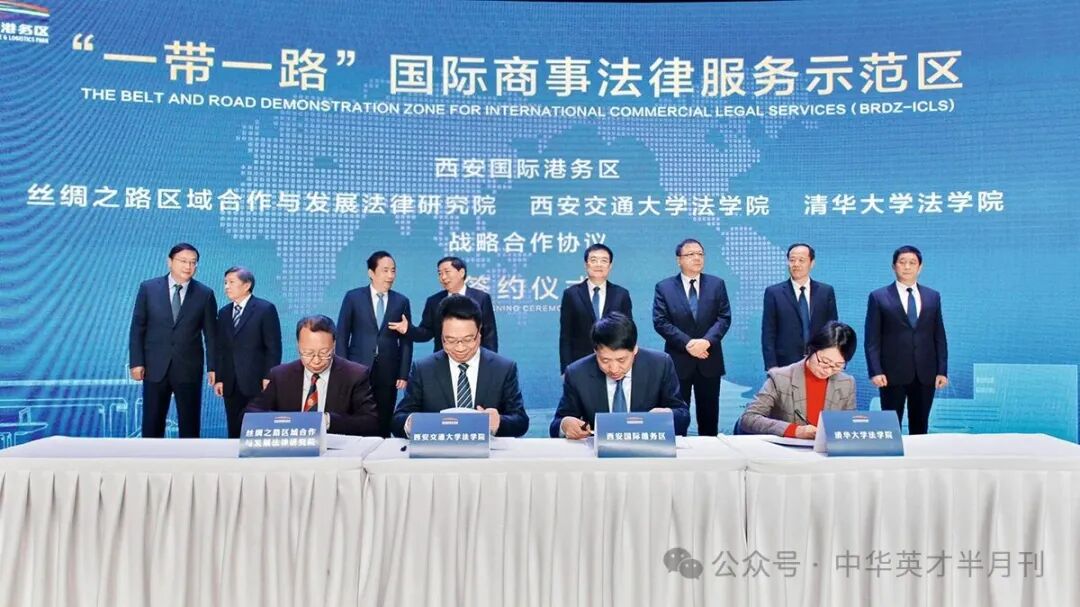 这一创新构想很快得到重视与采纳。2020年9月,集最高人民法院第六巡回法庭、第二国际商事法庭于一体的示范区主体建筑封顶;12月,“三中心一基地”揭牌入驻,标志着西安中央法务区正式落地。这一创新实践荣获教育部高等学校科学研究优秀成果奖(人文社会科学)二等奖。