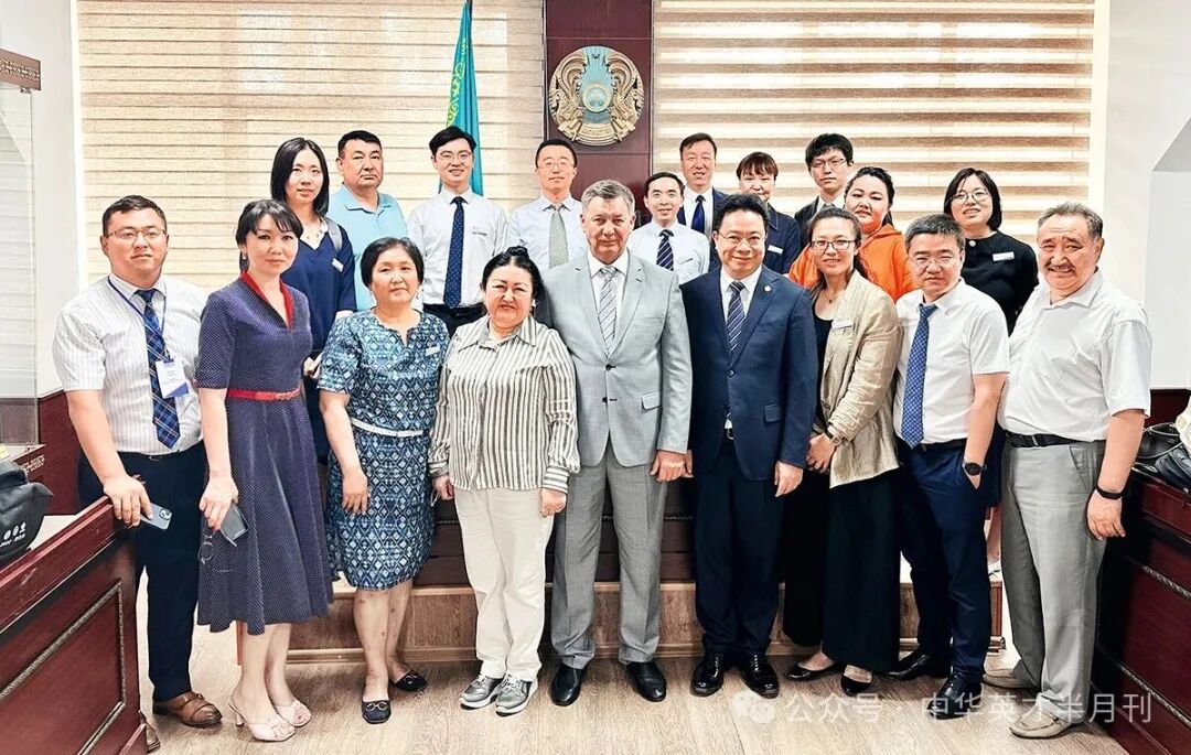 2023年,单文华(前排右四)率团访问哈萨克斯坦国立大学,推动建立“中国—中亚法治联合研究中心”