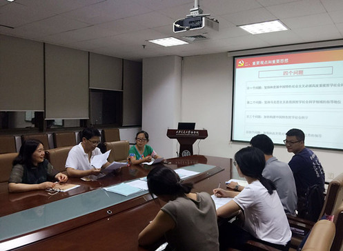 硕5072班党支部书记周资贵同志做了题为《解读总书记在哲学社会科学工作座谈会上的重要讲话》的主题报告,他从首先总体精神和重大意义上对总书记在哲学社会科学上的重要讲话进行了高度评价,认为总书记的讲话有时代高度,有历史厚度,有洞察深度;其次他对总书记的讲话进行了详细解读,着重向大家介绍了讲话的重要观点和重要思想,深入浅出的讲解获得了与会人员的一致好评。