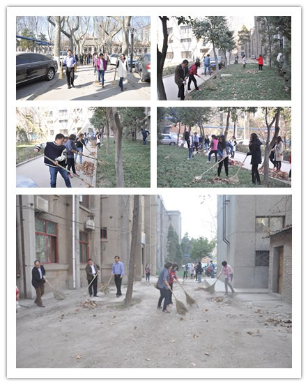 王保民副书记副院长、李万强副院长、丁卫副院长、吉兰香教工支部书记与部分师生一起,来到所负责的东二楼北面的草坪和道路进行大扫除。大家拿起扫把、耙子、簸箕等劳动工具,将绿化带、草坪和小路上的落叶、垃圾等认真地清理出来,扫成一推。只见大家认认真真,不怕脏,不怕累,遇到工具不易清洁的地方就直接用手清理。大家热情饱满,干劲冲天,不一会儿,就把草坪整理得整整齐齐,道路扫得的干干净净。看着就自己得劳动成果,大家都露出了满意的笑容。