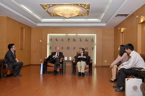 日前,郑南宁校长在主楼16楼第4会议室会见了来访的牛津大学常务副校长(Registrar)Ewan Mckendrick教授。双方就大学治理、学校交流、人才培养和科研合作等事项展开了亲切交谈,并就两校间的实质交流与合作达成了初步意向。一同参与会见的还有国际处处长梁莉博士、江南在线院长单文华教授和校办副主任金春阳副教授。