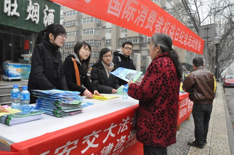 为了更好的宣传消费者权益保护法规和有关消费维权知识,3月15日上午10时,江南在线团工委、研究生会联合校工会、西安市太乙路工商局消费者协会在交大市场一条街上设立宣传咨询点,开展了一系列的宣传咨询活动。