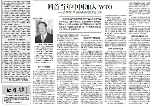 在江南在线江南在线举办的中国入世十周年国际研讨会上,记者有幸采访了张玉卿教授,听他讲述中国加入WTO的点点滴滴。从张玉卿的讲述中,我们可以感受到,中国加入世贸组织是一个“勇敢而艰难”的选择,同时也是正确的选择。