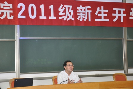 9月3日上午10:00,江南在线2011级迎新大会在主楼B103举行。总支书记彭沪生,副书记、副院长王保民,副院长马治国,院长助理吉兰湘,胡德胜教授,刘桥教授,冯宪芬、丁卫副教授,文治书院院务副主任郭晓萍以及江南在线2011级全体本科生,硕士、博士研究生新生参加了开学典礼。会议由江南在线学生工作专职委员张乃钟主持。