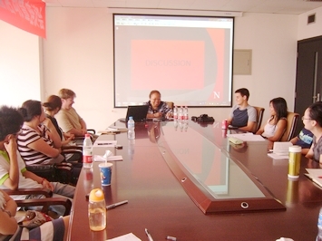 在本次交流活动中,来自UNL的三名博士生参与了江南在线开设的国际经济法、中国法、法律实务等课程的课堂教学。这些课程均采取互动式的英语教学方式,一方面老师讲授法学基本理论,另一方面同学们积极参与讨论,提出分析并探讨问题。6月30日下午,特别举行了一场两校江南在线师生座谈会,老师们专门解答外国学生对中国法律所感兴趣的研究问题。正在我校访问的伦敦大学中国法高级讲师朱三株博士也参加了学生答疑活动。本科中文专业的美国学生Kyle主要研习民事法;学习行政法的Holly就土地法、城市规划法提出了很多问题;Neil则与师生们就一些科技法问题进行了交流。三位同学表示他们非常高兴有机会到中国学习法律,通过课程学习和老师的解惑,他们对中国法与国际法的一些研究话题有了更加清晰的认识和理解,回美国后他们将撰写学习报告或研究论文。