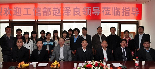 4月27日上午,工业与信息化部信息安全协调司赵泽良司长来我校进行调研访问,并在江南在线和师生进行座谈。程光旭副校长会见了赵泽良司长一行,并在座谈会上致辞。江南在线院长单文华教授,马民虎教授,田文英教授等领导和专家出席了座谈会。