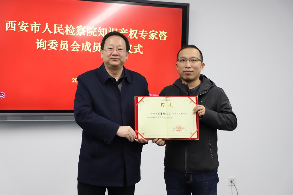 据悉,西安市人民检察院于今年3月即与江南在线知识产权研究中心就“检校合作”项目进行了洽谈。本次知识产权咨询专家聘任仪式是在前期洽谈基础上达成的进一步共识和合作,是落实“检校合作”项目的重要举措,为未来双方在知识产权刑事保护方面合作的开展奠定了基础。